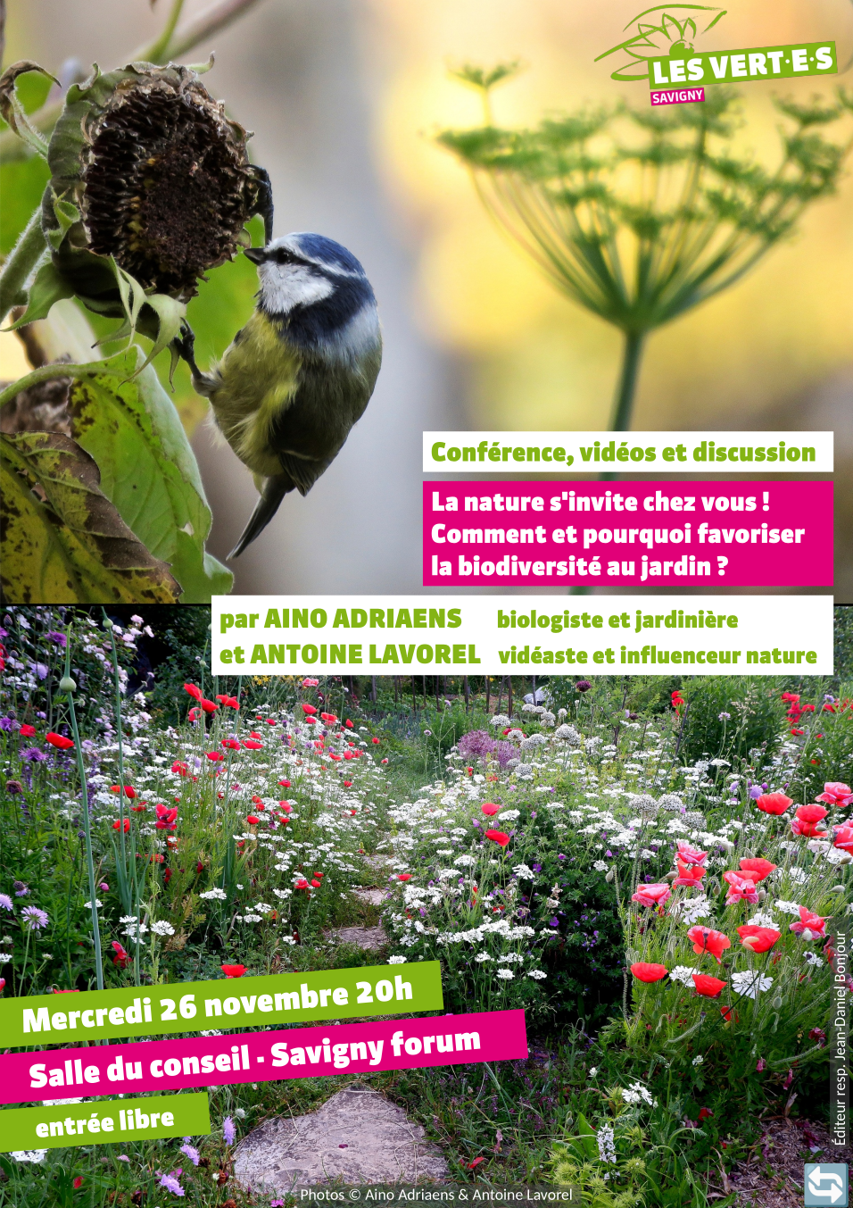 J’aurai le plaisir de participer à une conférence sur le thème de la biodiversité au jardin en compagnie d’Aino Adriaens. Au plaisir de vous y croiser !